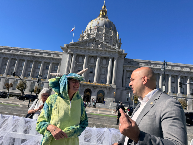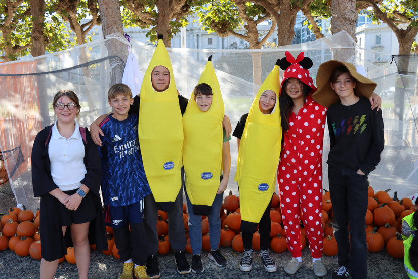 Activities included crafts, a bounce house, corn hole, pumpkin picking and trick-or-treat. Special guests included Mayor Daniel Lurie, Per Sia, award-winning drag queen who read to the children in Spanish, a magician, a clown, and three members of San Francisco's pro women's basketball team the Golden State Valkyries. Kids left with books, pumpkins, snacks, and goody bags filled with toys and treats.